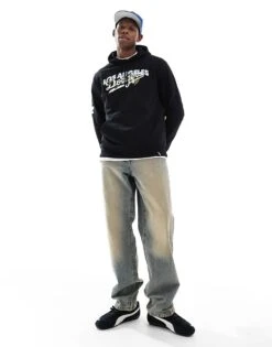 New Era LA Dodgers Floral Embroidered Logo Hoodie In Black For Men